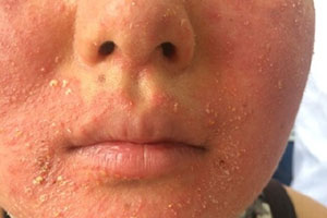 面部激素依赖性皮炎是皮肤科常见的一种面部皮炎,持续时间长,反复发作,严重影响患者的美观和日常生活。其临床表现为:面部反复发作的皮炎,出现红斑,丘疹,自觉瘙痒。患者外涂含有激素类的软膏后上述症状会逐渐消失,停用激素类软膏后1周到2周,上述症状再次出现。患者长时间多次皮炎发作后,面部(特别是两颊部位)出现毛细血管扩张(俗称大红脸),面部皮肤更加敏感,皮炎发生的更加频繁。