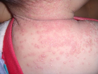 小儿过敏性湿疹是宝宝常见的一种过敏性皮肤病,其临床特点为多形性皮疹,倾向渗出,对称分布,自觉剧烈搔痒,病情易反复,可多年不愈。病因较复杂。多由于某些外界或体内因素的相互作用所致。因果关系较复杂,其他影响因素亦多,因而与接触性皮炎不同。多见于那些胖嘟嘟的宝宝,通常在生后第2或第3个月开始发生,好发于颜面部及皮肤皱褶部如颈后、肘内侧、腘窝,也可累及全身。