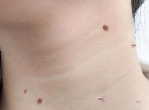 首先丝状疣的可不仅长在脖子上,它还会长在眼睛周围、头皮等。不同部位、但形态却是大同小异
