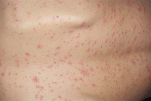 有少数患者开始皮损为红色丘疹,可互相融合成斑片,这类患者常有剧痒,称为丘疹型玫瑰糠疹。