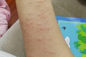 自觉剧烈瘙痒,皮损多形性、红斑、丘疹、丘疱疹或水疱密集成片,易渗出,边缘不清,周围散在小丘疹、丘疱疹,常伴糜烂、结疤,如继发感染,可出现脓包或浓痂。处理适当则炎症减轻,皮损可在2~3周后消退,但常反复发作并可转为亚急性或慢性湿疹。