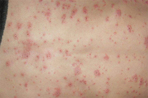 玫瑰糠疹早期症状,可能不是那么严重,皮肤呈现出大小不一的玫瑰色、淡红斑点,有轻微的皮屑,但是不会那么严重,以对称分布,刚开始是躯干,到后来就是四肢。玫瑰糠疹斑点常常是椭圆形,并且伴有骚痒症状。