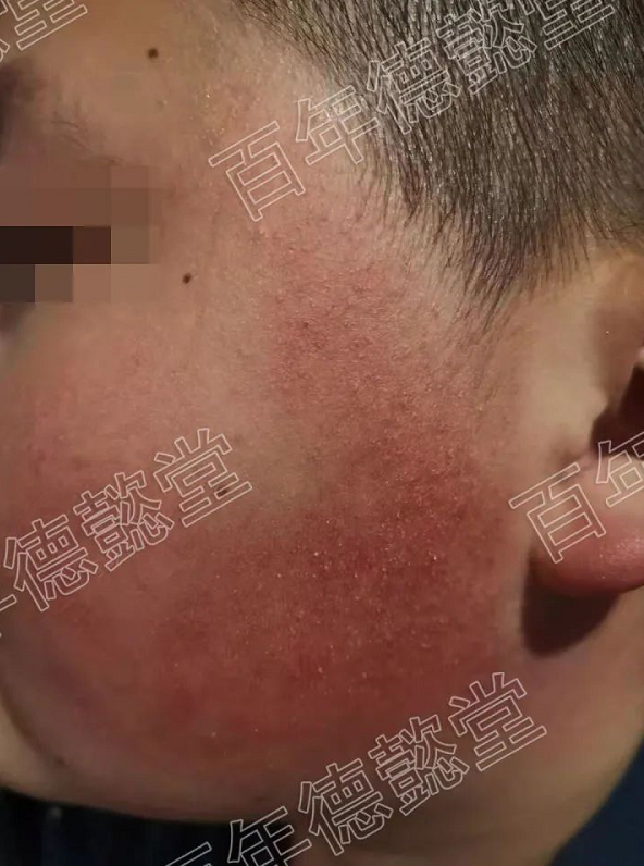 有一种皮肤病,特别喜欢找上年轻人,尤其是男孩子,它的主要表现就是脸颊、耳根及颈部又黑又红、丘疹、色素沉着。如下图: