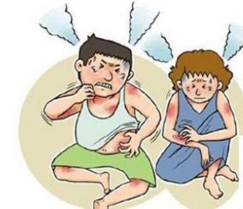 荨麻疹患者皮肤上会出现大小不一致、不规则的、白色或红色的分团或丘疹。瘙痒感剧烈但是是暂时性,和湿疹的症状类似。发病部位对称分布。皮损处可能会出现小水疱、渗液、糜烂、结痂、苔藓化、脱屑、丘疹、丘疱疹的现象。症状堪比荨麻疹典型。