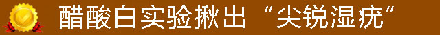 醋酸白试验是将5%醋酸液涂抹或敷贴在可疑的受损皮肤上,而使有尖锐湿疣的疣体发白。具体方法是:将浸透醋酸的纱布或纸巾,敷到长出来的增生物上,过3~5分钟后观察突起是否变白(肛门部位的疣体需要10~15分钟)。用肉眼或借助放大镜观察局部,如果出现增生物明显的变白,就可以诊断为尖锐湿疣。